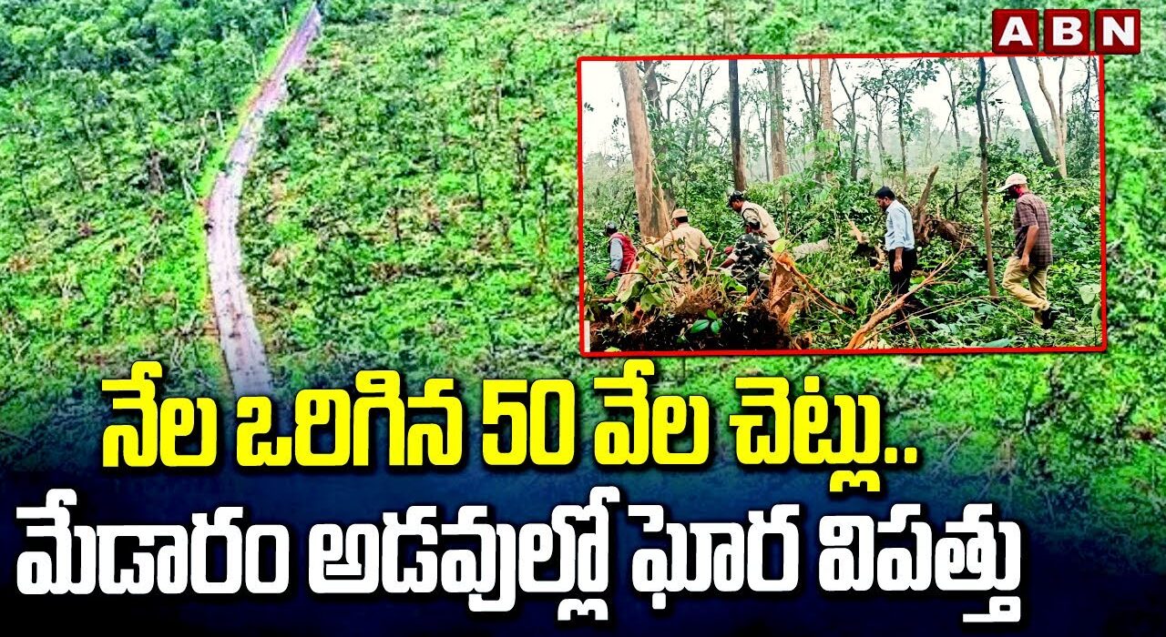 నేల ఒరిగిన 50 వేల చెట్లు.. మేడారం అడవుల్లో ఘోర విపత్తు | 50 Thousand Trees Fall Down At Medaram