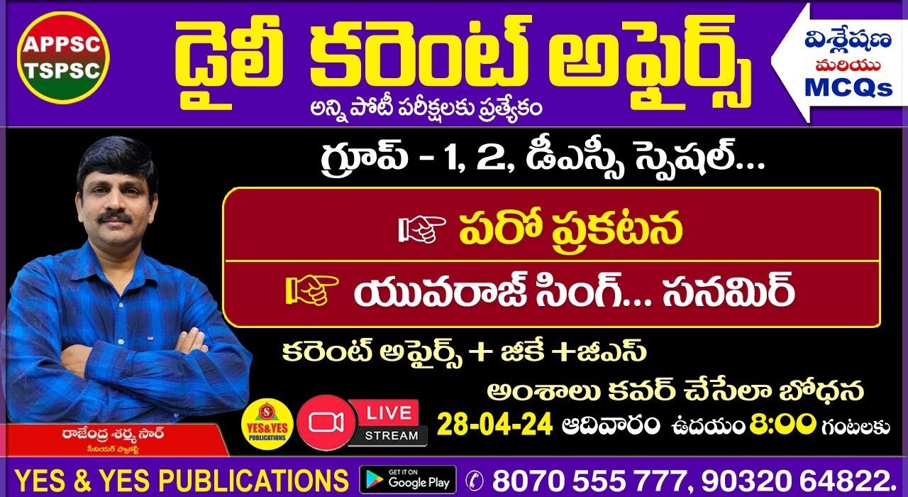 Education April 28th 2024 CURRENT AFFAIRS TELUGU || డైలీ కరెంట్ అఫైర్స్ – 2024🔴LIVE on 28-04-2024 @ 8 am 28 April 2024 0 Comments 79 Views