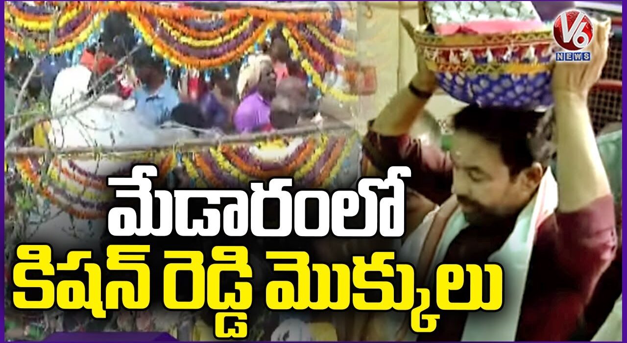 Central Minister Kishan Reddy Offers Prayers At Medaram | Sammakka Sarakka Jatara | V6 News