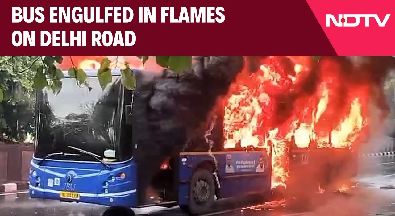 Delhi Bus Fire | Bus Engulfed In Flames On Delhi Road