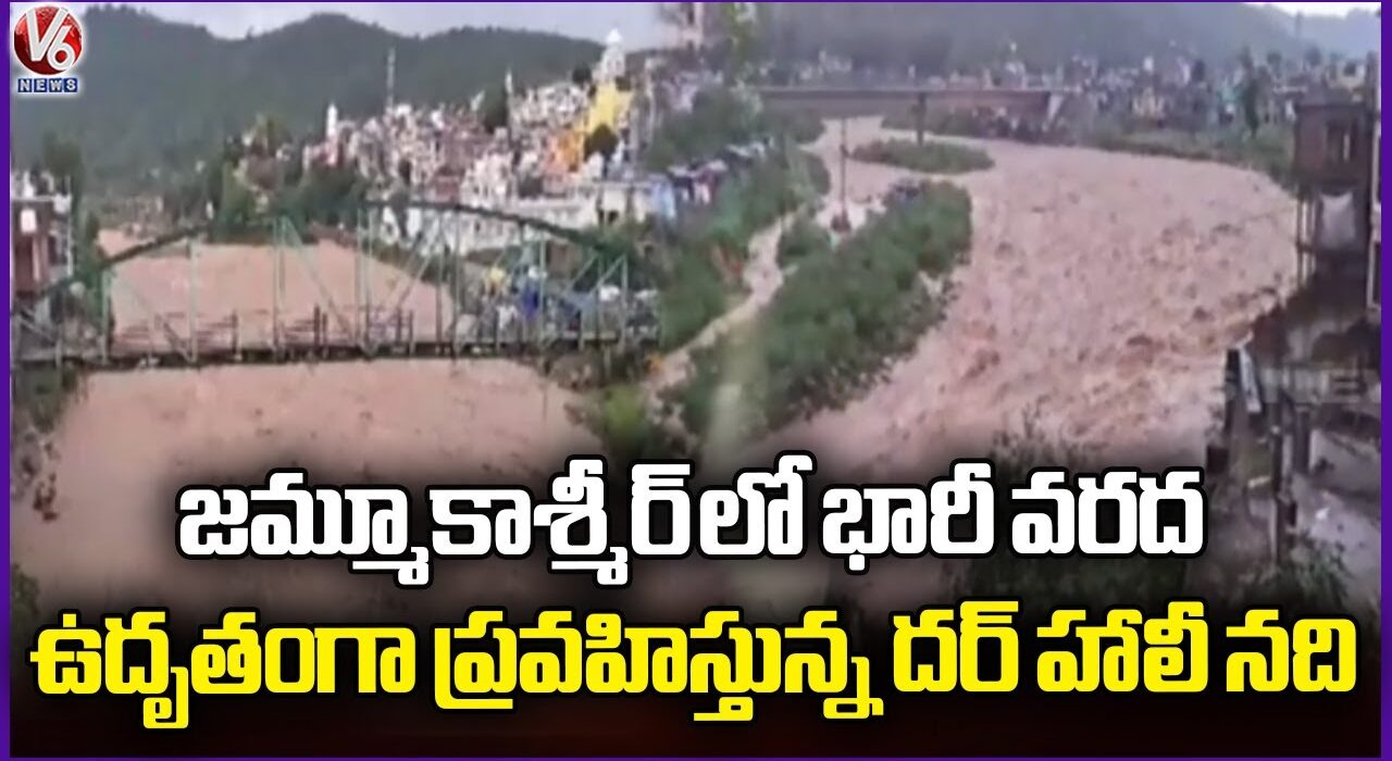Jammu Kashmir Rain : Heavy Rainfall Causes Widespread Flooding In Dar Hali River | V6 News